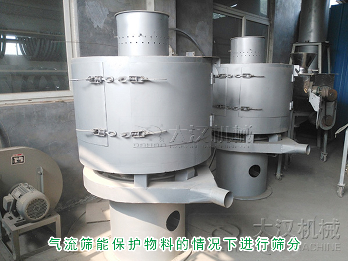大漢氣流篩設備在篩分180-270目石英粉等物料的篩分使用,測得每平方米篩網面積每小時產量均在一噸左右,同時測得篩分效率在95%以上,空氣含塵量低于10mg/m3。所以氣流篩是可以進行碳化鎢粉的篩分的。